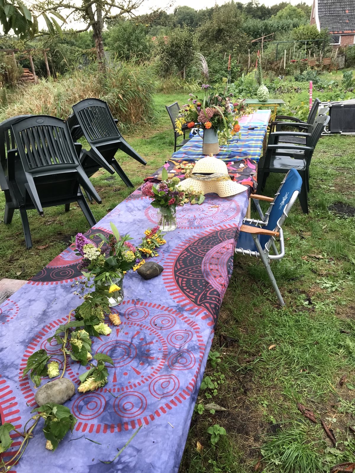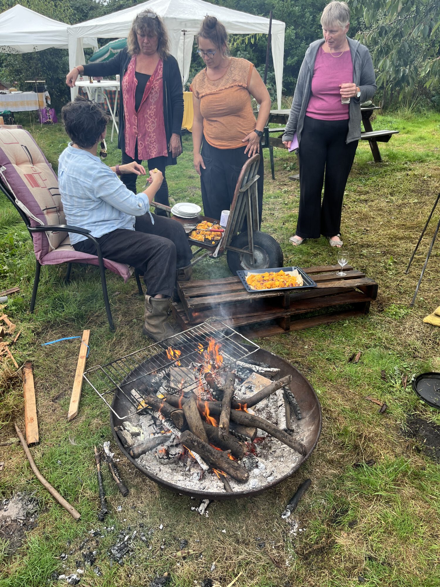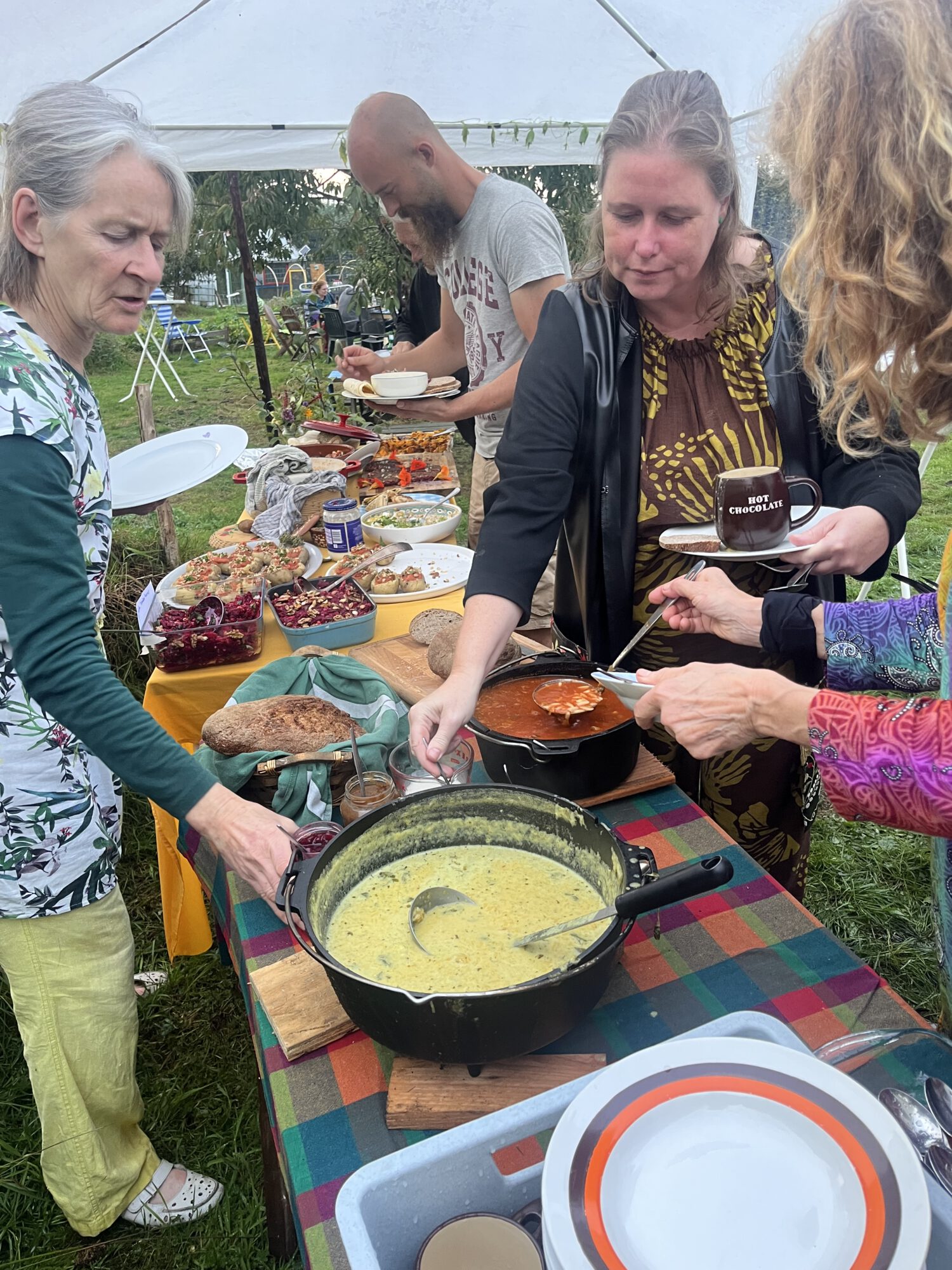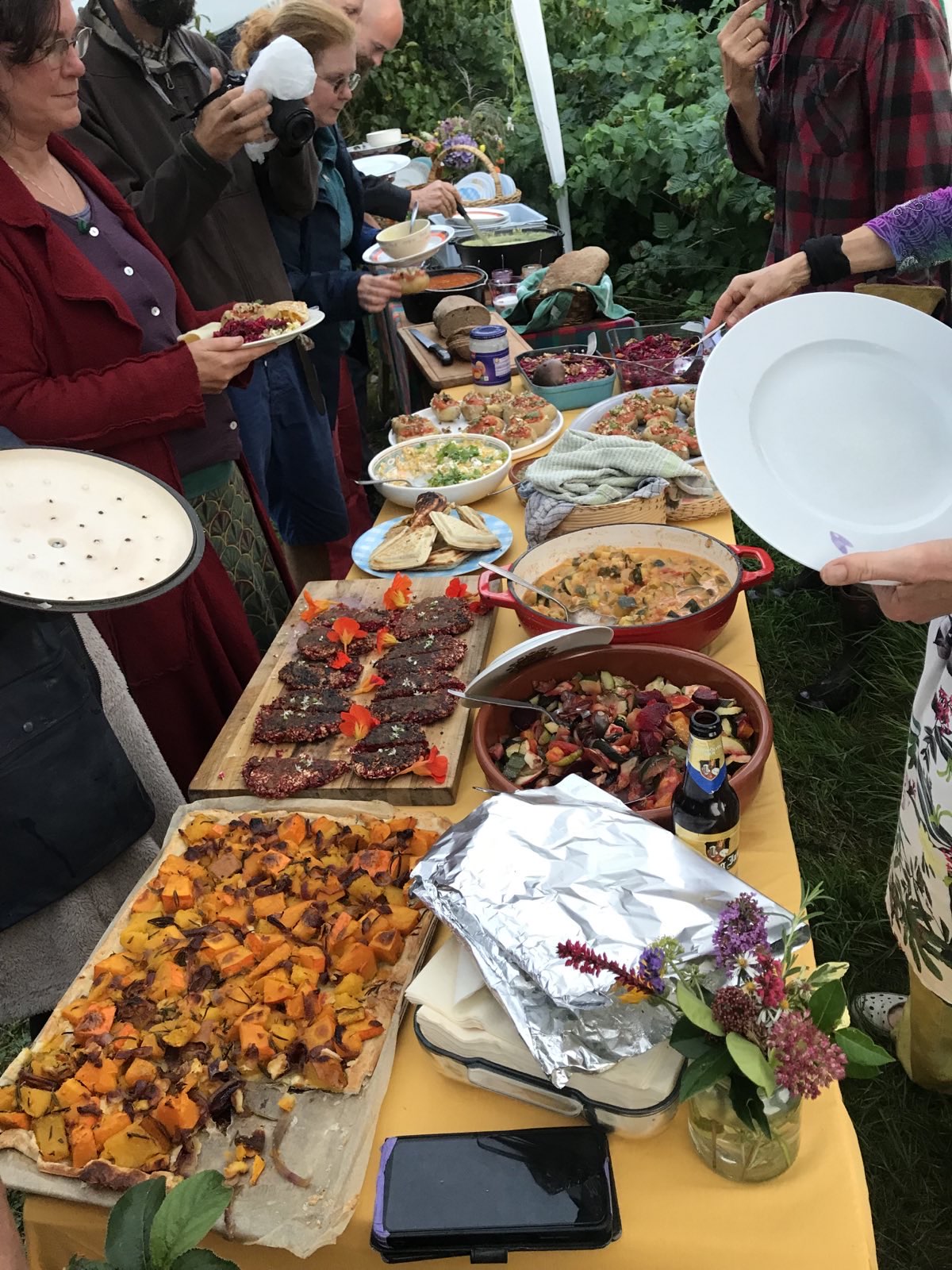 Dit septemberfeestje was een nieuw concept. Niet dat de potlucks van de twee voorgaande jaren minder waren, maar ach, iets anders proberen is de moeite waard. We zijn dan ook benieuwd naar hoe iedereen het ervaren heeft. De organisatoren gaan hun deel nog evalueren en wie weet, komt er na gesprekken in de verschillende kringen iets voort dat de volgende keer nog leuker maakt. Niet alles was meteen super, maar wie niet waagt die niet wint. Er werden overdadig veel groentes ingebracht. Er werd, voorbereid en onvoorbereid, geweldig gekookt, er waren wat leuke verrassingen en we hebben tot de sterren aan de hemel stonden gekletst rond het vuur. Iedereen die meedeed aan de voorbereiding heeft met plezier keihard gewerkt. Benieuwd hoe dit verder gaat.