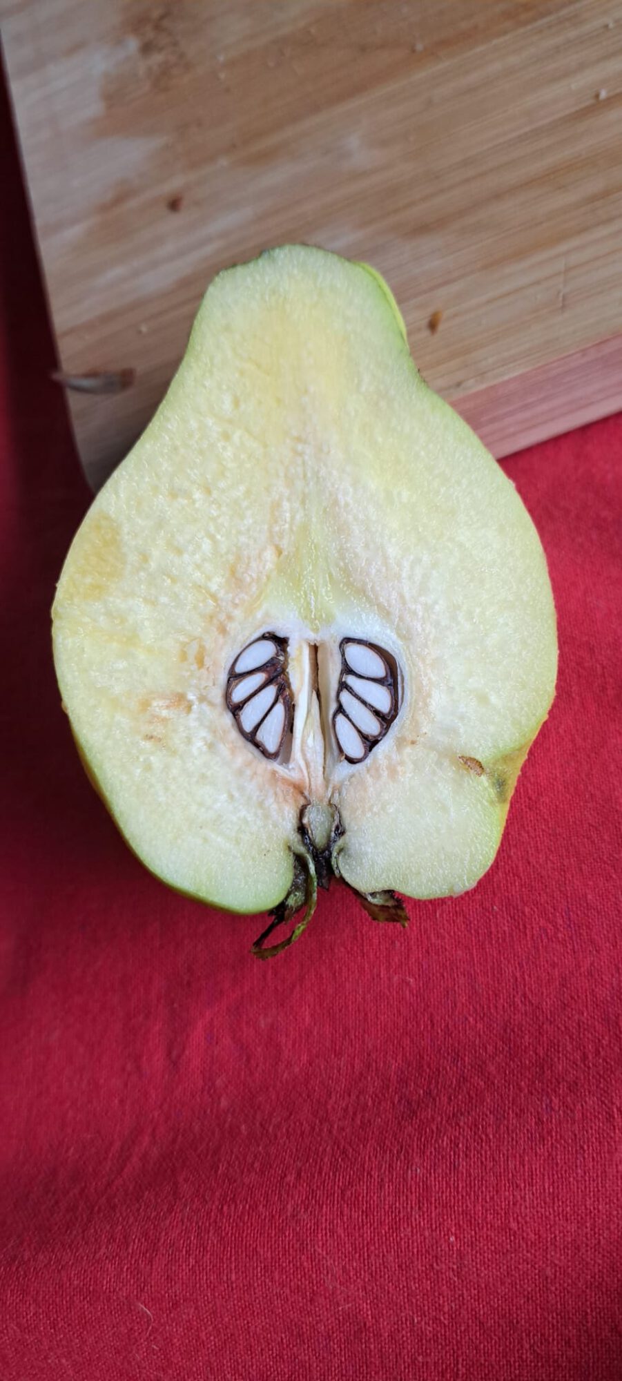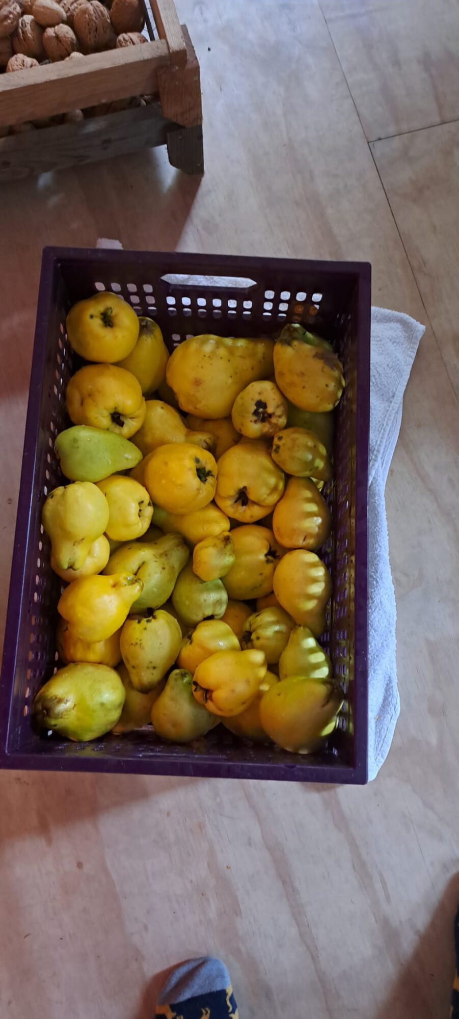 Half oktober een ander oogstfeest, nu op Het Tweede Landje … De kweeperen waren rijp om te oogsten.