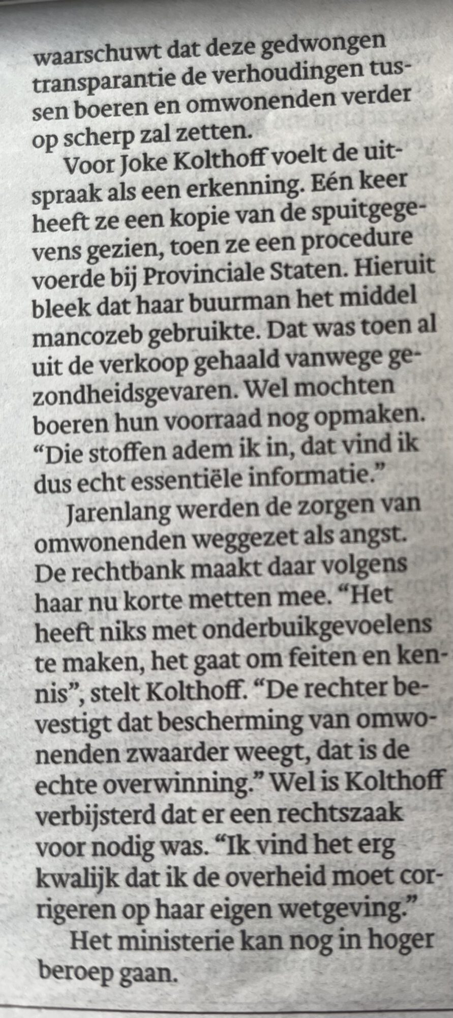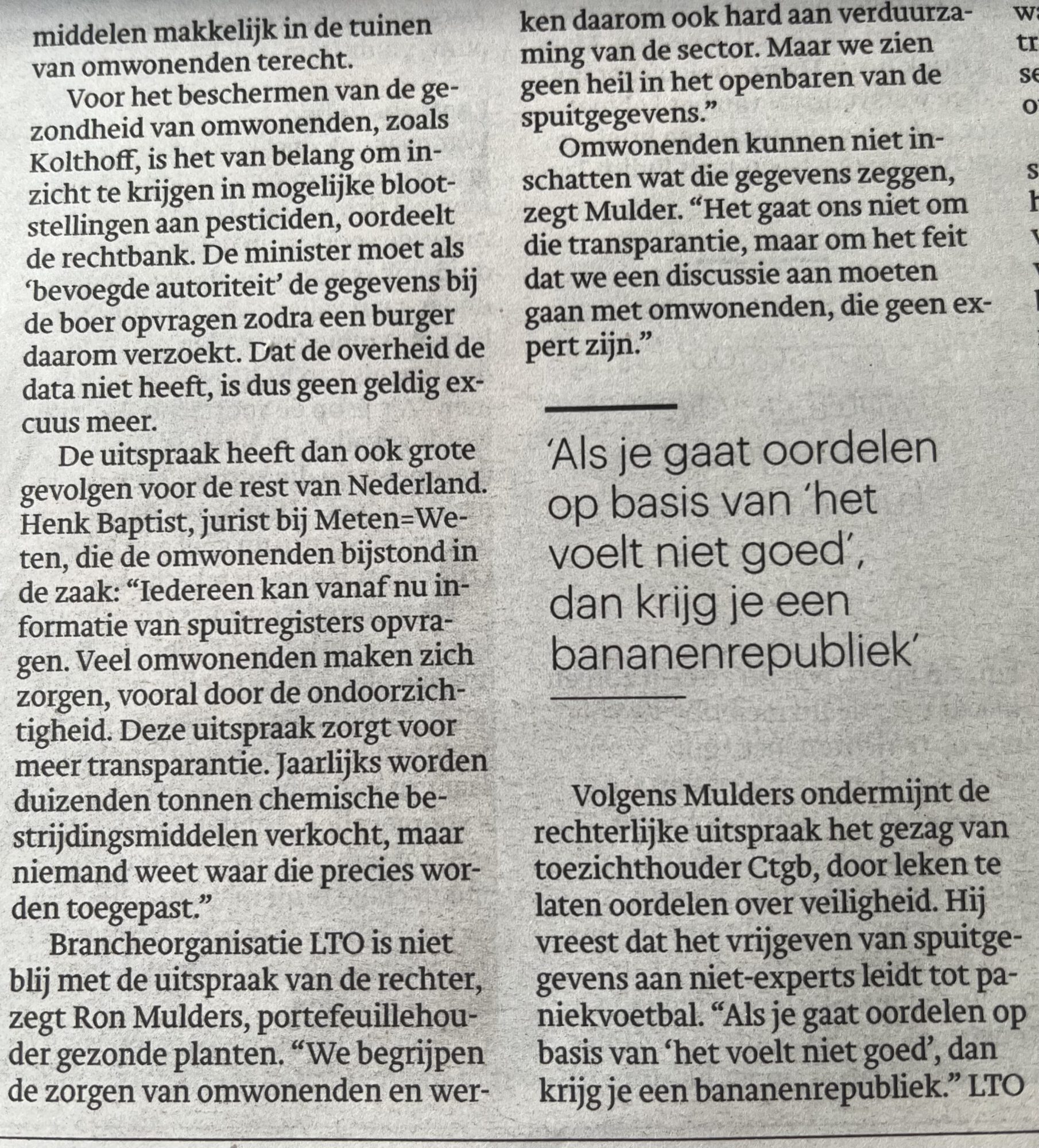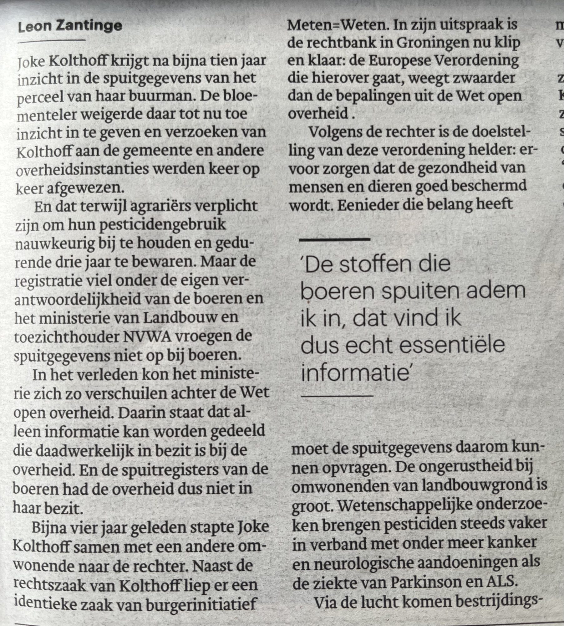 Trouw wo 21 jan: Omwonenden mogen wel degelijk weten welk gif er wordt gespoten